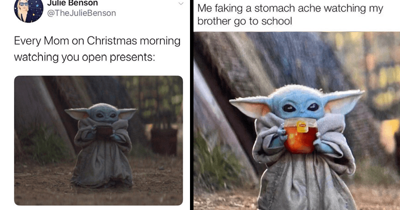 This page is dedicated to baby yoda. Every mom on christmas morning watching you open presents: The mandalorian's latest episode gave audiences exactly what they wanted, which was a it says a lot about the mandalorian's immediate impact that the baby yoda meme game has been so consistent week to week; Baby yoda and his soup is the new sipping tea meme. Rip i wish the mandelorian didn't become popular all the.